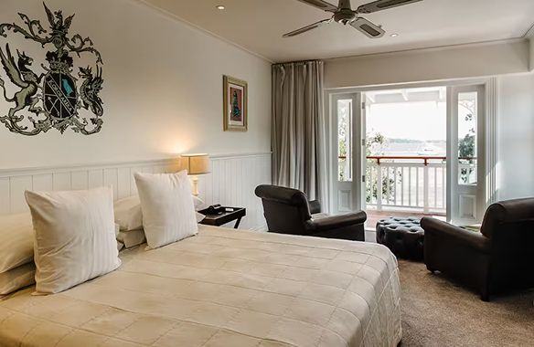 Recently renovated our premium waterfront rooms offer stunning views to Paihia and Waitangi and overlook the magnificent Bay of Islands. Opening onto a balcony these rooms feature a luxurious super-king bed, en-suite bathroom with shower over bath, sofa or leather armchairs, Flat Screen T.V, tea & coffee making facilities, refrigerator and complimentary Wi-Fi access. Lie in bed and listen to the waves lap up on the shore. Twin configuration also available.